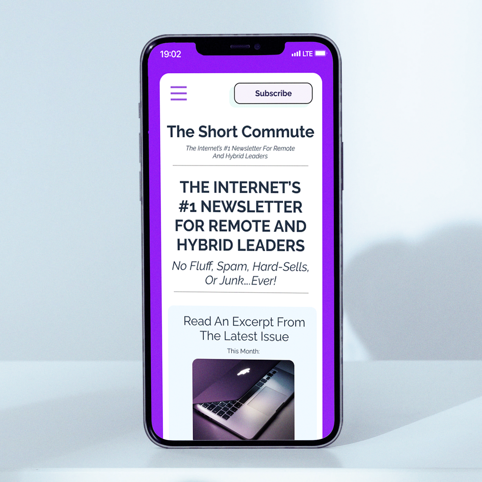 Web design for The Short Commute, a subscription-based newsletter featuring the latest news in the remote working industry.